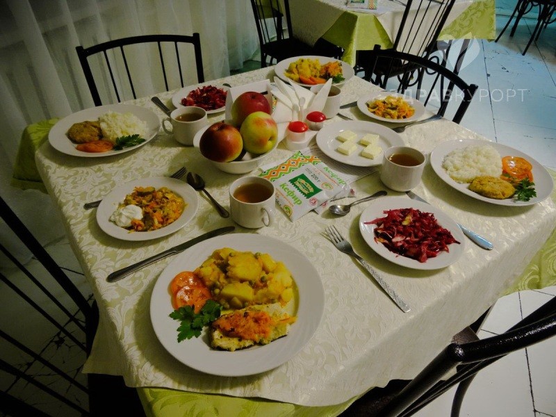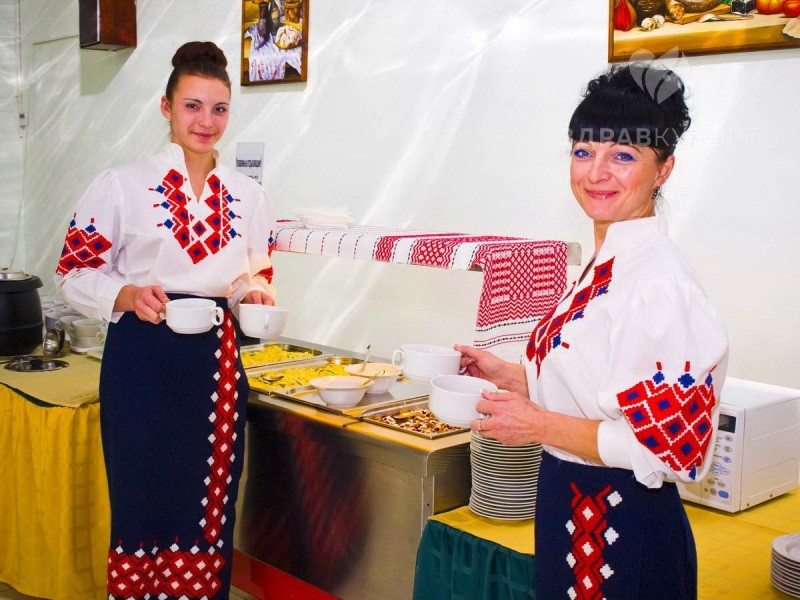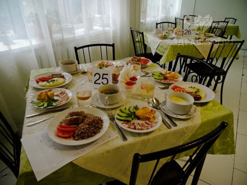 В санатории имеются свои фирменные блюда, в меню много национальных белорусских блюд. В питании отдыхающих широко используются овощи и фрукты, морепродукты, морская рыба, соки, молочные продукты и многие другие.