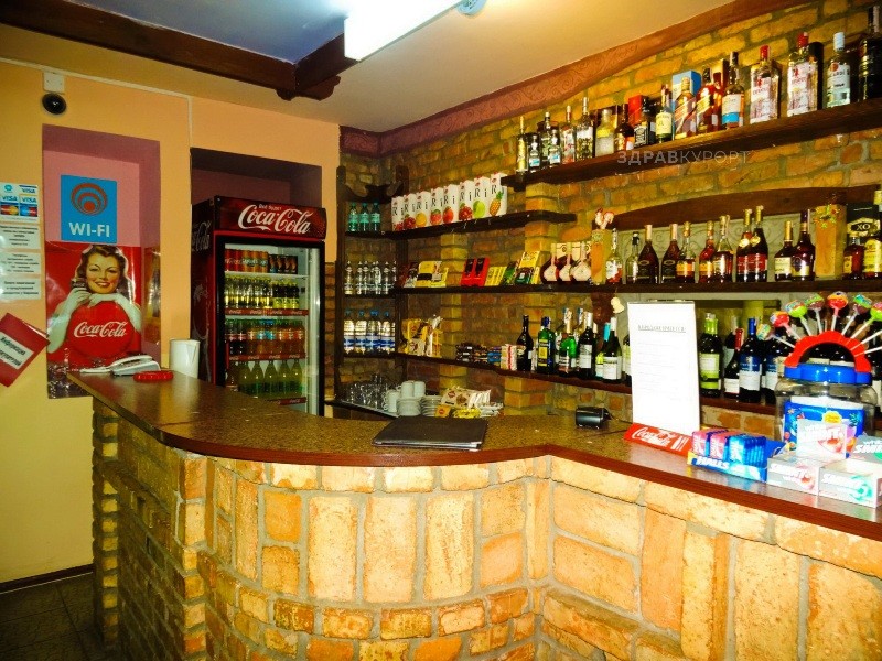 Насладиться чашечкой ароматного кофе и провести время в приятной компании можно в баре «Вечерний» на 32 места, расположенный на 1 этаже водолечебницы. С открытием летнего сезона открывается и кафе на пляже недалеко от санатория