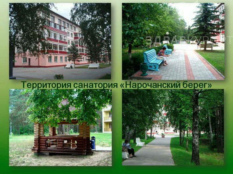 На территории парковой зоны самого санатория Нарочанский Берег растут сосны и ели, березы, липы, каштан и яблони, дубы и клены. Использование климатических факторов с лечебными и профилактическими целями успешно проводится в санатории.